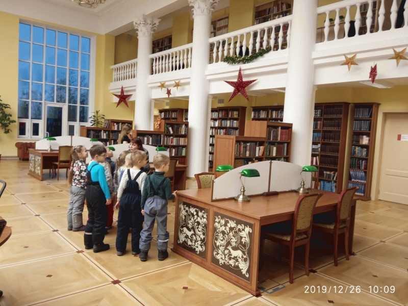 В декабре дети подготовительной к школе группы « Красная Шапочка» побывали на обзорной экскурсии в Национальной библиотеке Республики Карелия. Сотрудники очень радушно встретили наших ребят, познакомили с некоторыми залами библиотеки, рассказали и показали, как и чем оснащено это прекрасное, современное хранилище книг. Дети с большим удовольствием и интересом рассматривали залы библиотеки и все, что находится в них. Очень понравились ребятам макеты - копии трех наших театров: Национального, Музыкального и Театра кукол.