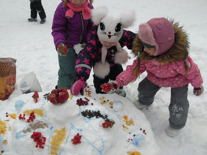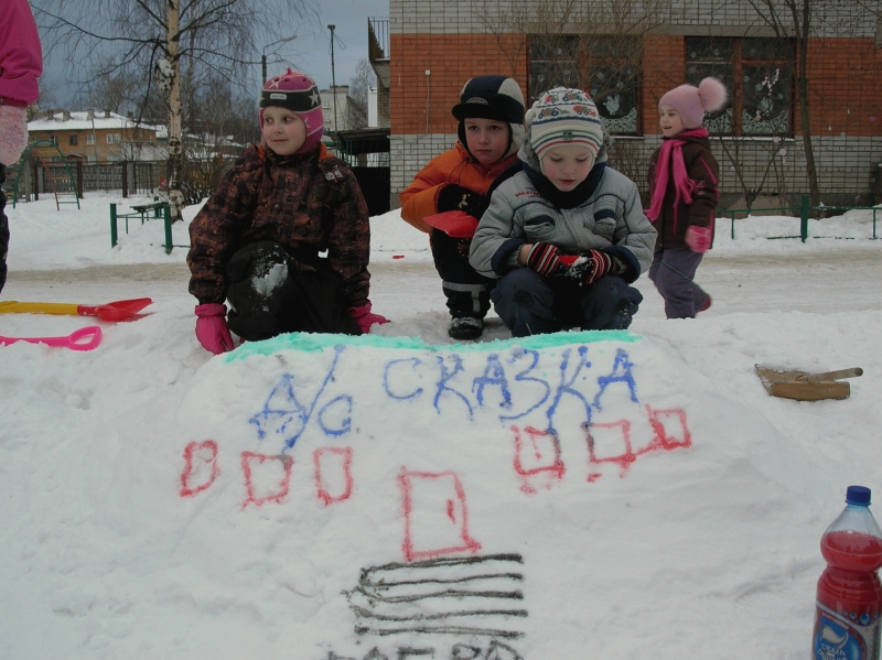 Композиции из снега и льда выполнены дошкольниками и воспитателями.
