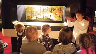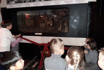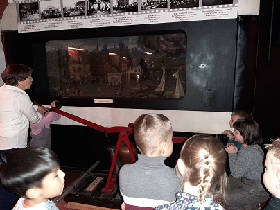 В музее создано несколько диорам, которые в точности воссоздают историю нашего города, где мы увидели Петрозаводскую пристань 19 века, как разгорается огонь, бьют в набат и приезжает обоз тушить пожар. Также мы увидели старинный пожарный колокол, с помощью которого когда-то сообщали о возгорании. Нам был представлен экспонат пожарного насоса, которому не менее 150 лет. На сегодняшний день насос находится в рабочем состоянии, что позволило ребятам и родителям попробовать его в работе. Еще нам показали макет первой пожарной части и рассказали, что раньше номер пожарной охраны был «13». Ребята похвастались знаниями действующих номеров телефонов экстренных служб. Возле макета стоят фигуры в дореволюционных костюмах пожарной охраны, а рядом расположены манекены в современных костюмах. Также мы увидели макеты зданий, нам рассказали, как нужно правильно и быстро эвакуироваться. Затем, нашему вниманию был предоставлен стенд с «виновниками пожаров»: сгоревший утюг, кипятильник, новогодняя гирлянда и многое другое. Детям ещё раз напомнили о том, что нужно обязательно отключать бытовые приборы от сети, что бы это не привело к пожару. Есть в музее еще одна диорама «Пожар в квартире». Эта диорама поразила воображение детей и взрослых. Она наглядно демонстрирует нам, как уютная и красивая комната в одно мгновение из-за пожара превращается в пепелище. Ольга Николаевна рассказала нам о сирене пожарного оповещения и предложила детям и родителям закрыть уши руками, чтобы прослушать ее.