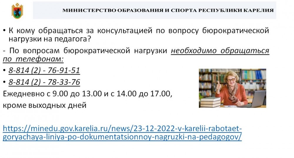 Снижение бюрократической нагрузки на педагогических работников образовательных учреждений Республики Карелия при реализации основных общеобразовательных программ